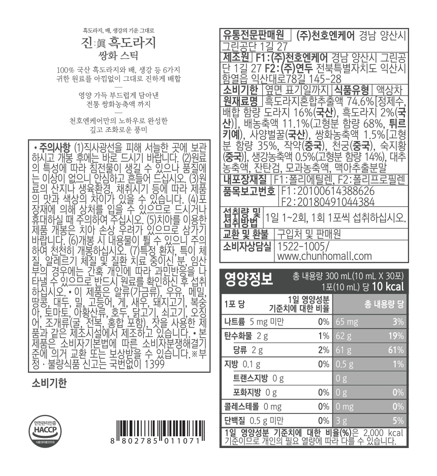 [한정수량] 천호엔케어 하루활력 진(眞)흑도라지쌍화스틱 10ml*30포*3상자