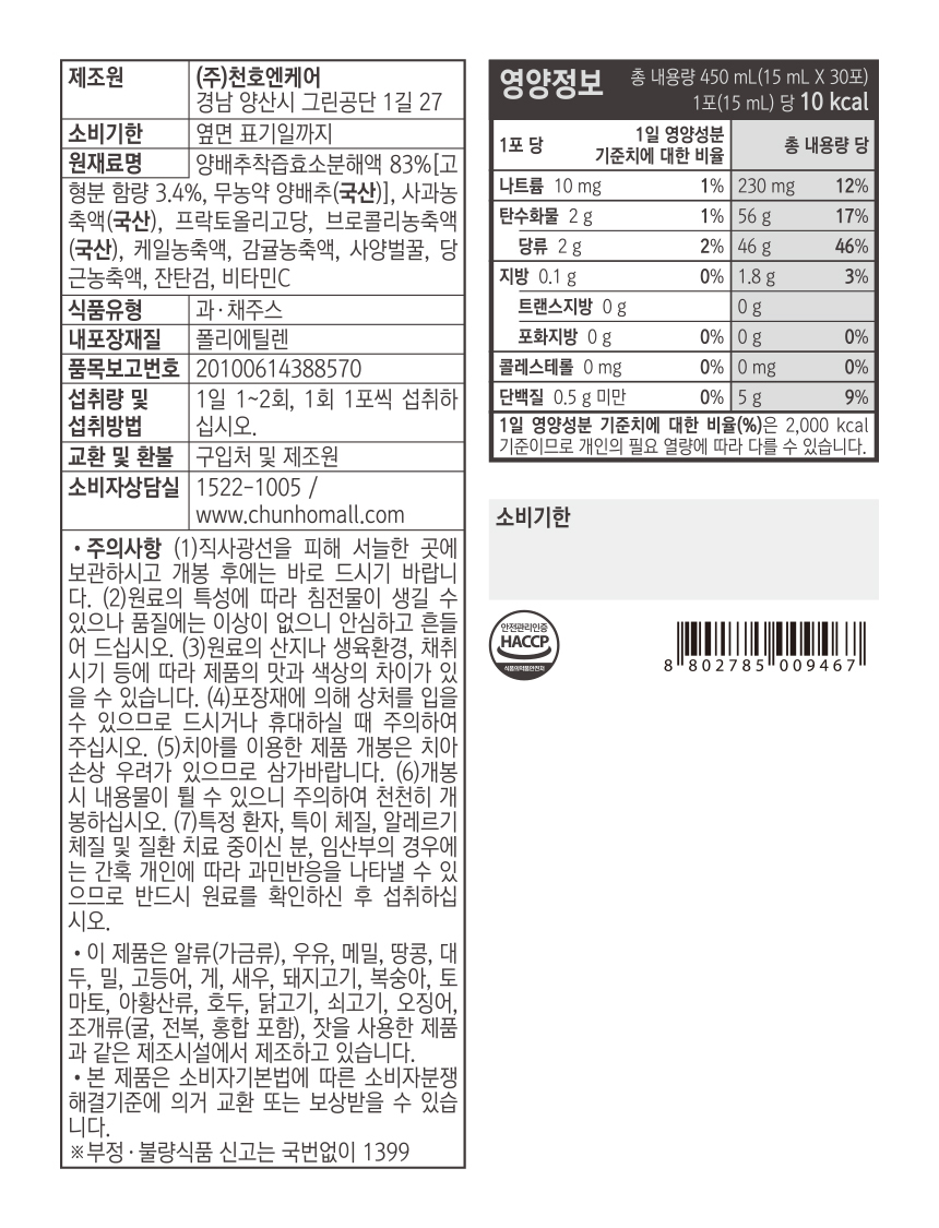 [한정수량] 천호엔케어 하루활력 양배추청 10ml*30포*3상자