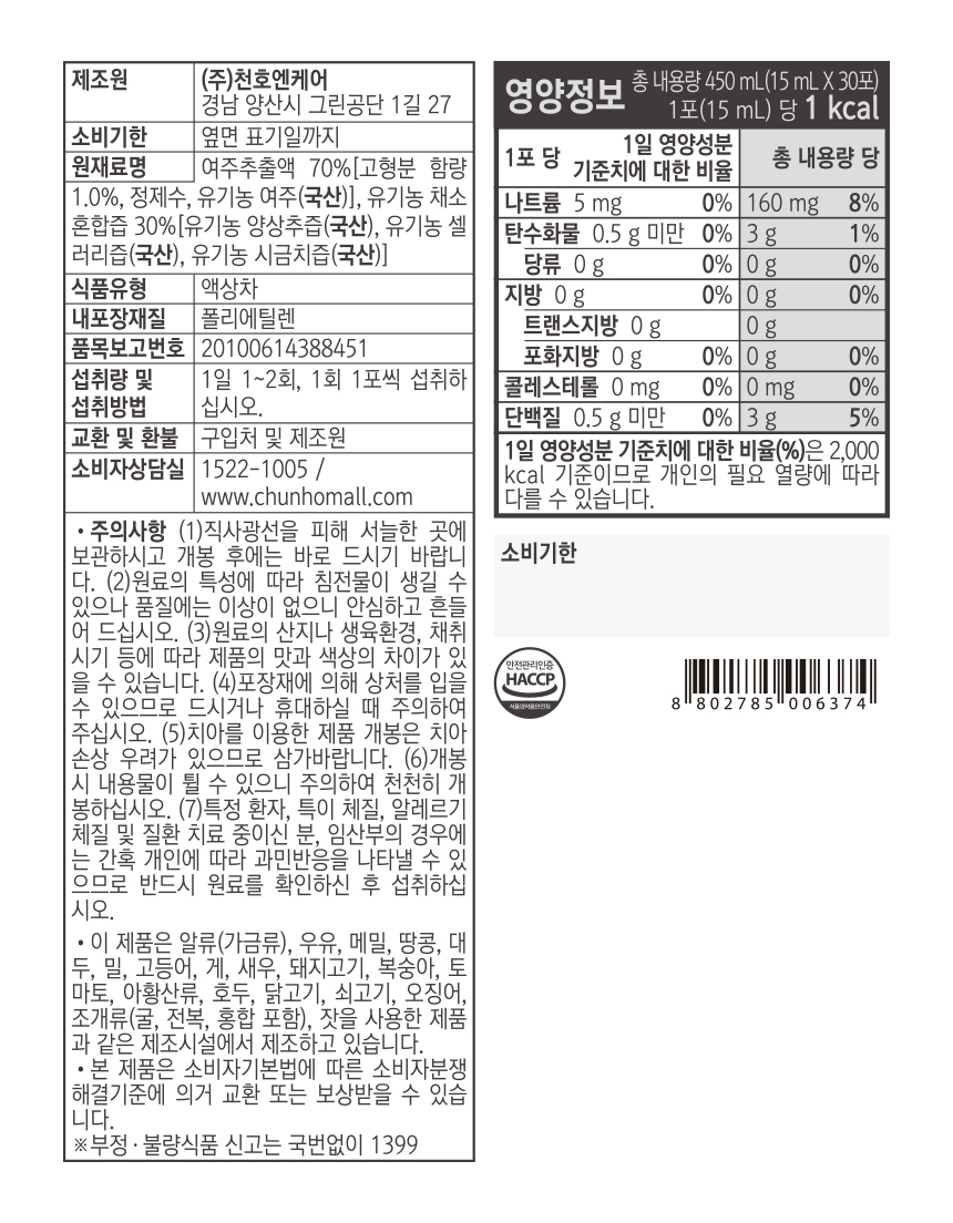 [한정수량] 천호엔케어 하루활력 여주스틱 15g*30포*3상자