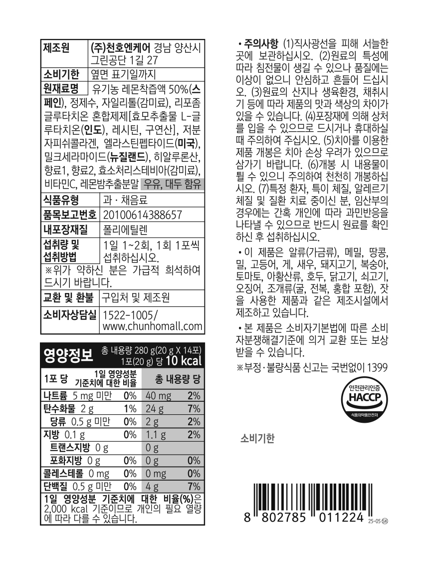 [한정수량] 천호엔케어 바이탈모닝 레몬콜라겐글루타치온 20g*14포*3상자