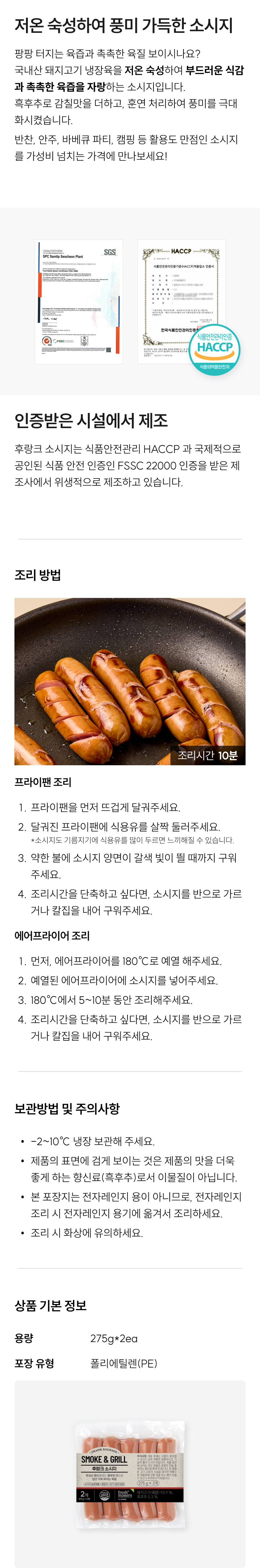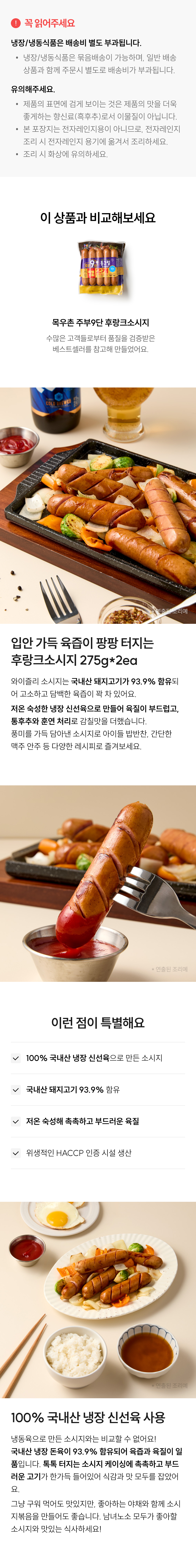[물가파괴] 육즙팡팡 후랑크소시지 275g*2팩 (돈육 93.9%)