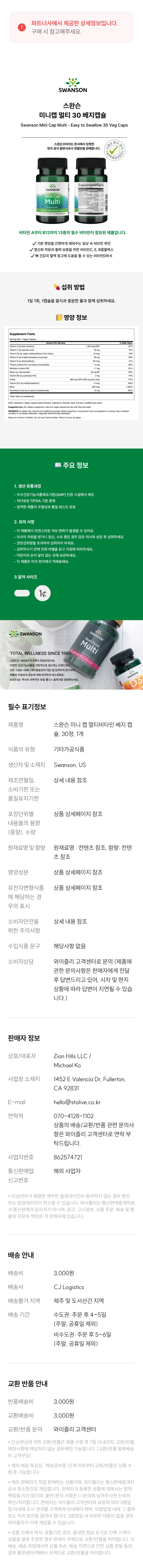 스완슨 미니 캡 멀티비타민 베지 캡슐, 30정, 1개