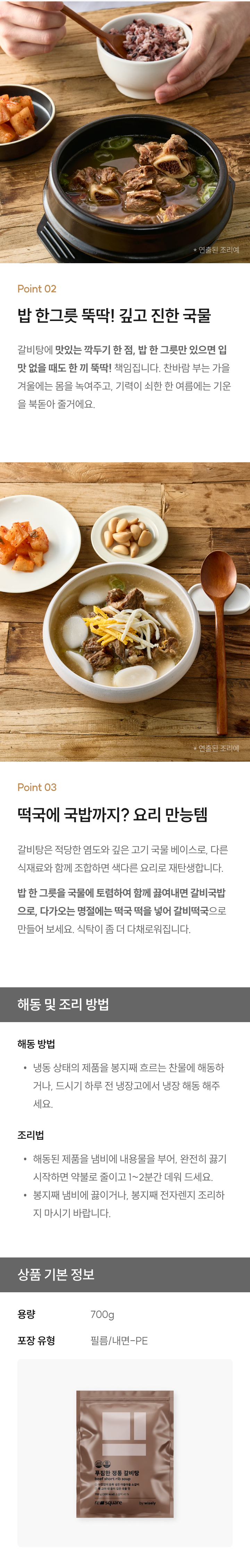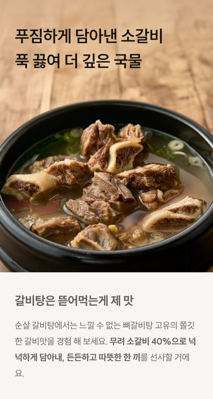 - 뼈 있는 진짜 갈비로 우려내어 전통 갈비탕의 깊고 진한 맛을 그대로