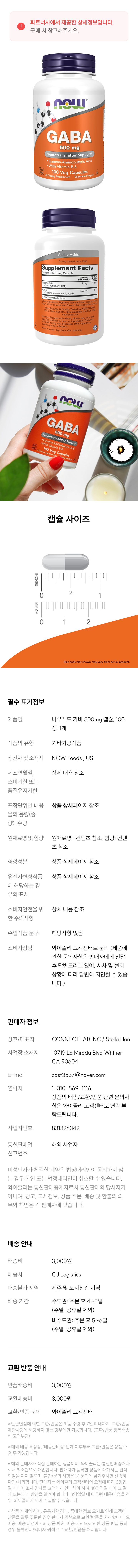 나우푸드 가바 500mg 캡슐, 100정, 1개