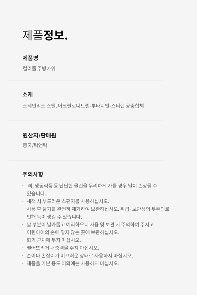Quick view Add to Cart The item has been added WST 락앤락 양손 불고기가위 25cm MSRP: Was: Now: ₩5,300 (Inc. Tax) MSRP: Was: Now: ₩5,300 (Ex. Tax)