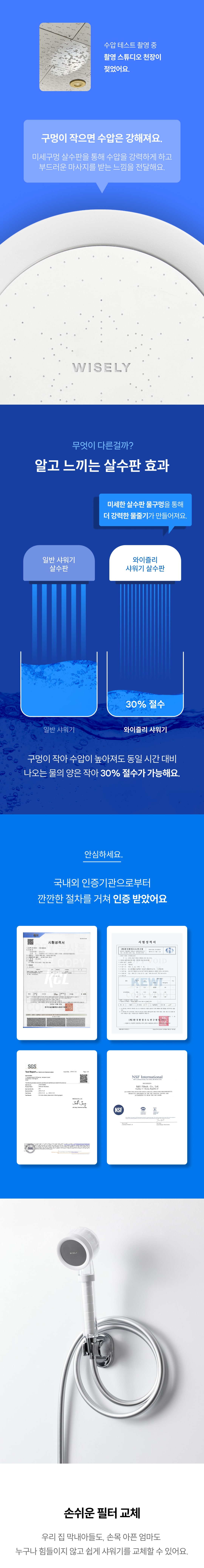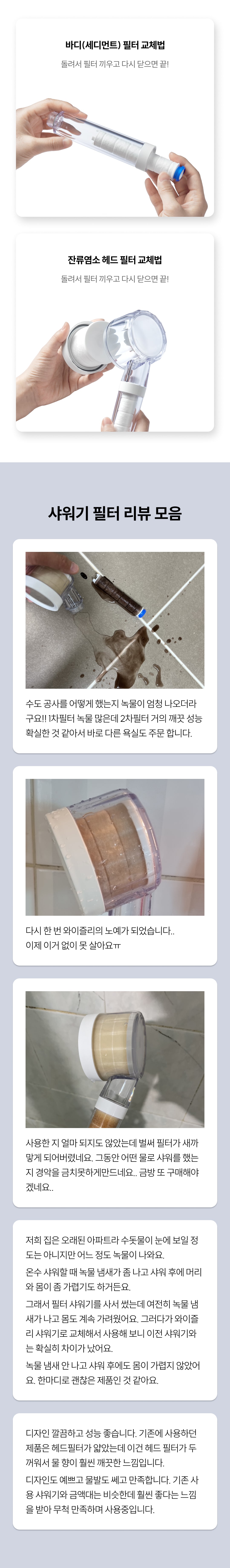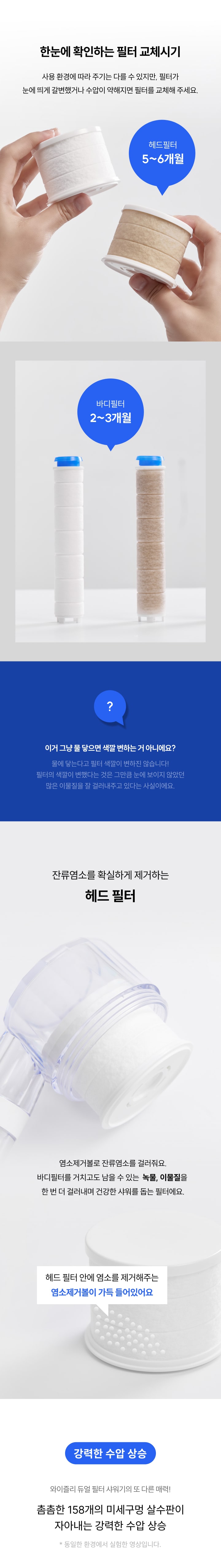 - 녹물, 이물질부터 잔류 염소까지 이중으로 걸러주는 필터 샤워기