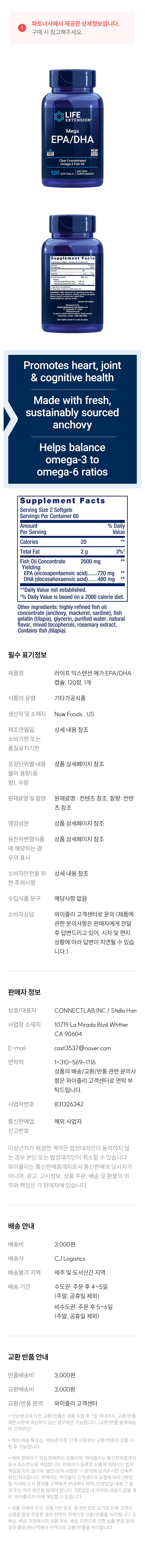 라이프 익스텐션 메가 EPA/DHA 1200mg 캡슐, 120정, 1개, 2개월 분