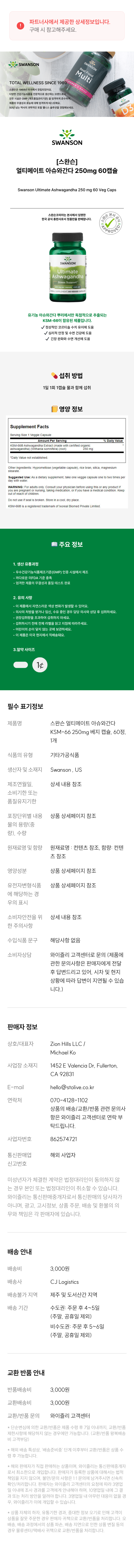 스완슨 얼티메이트 아슈와간다 KSM-66 250mg 베지 캡슐, 60정, 1개