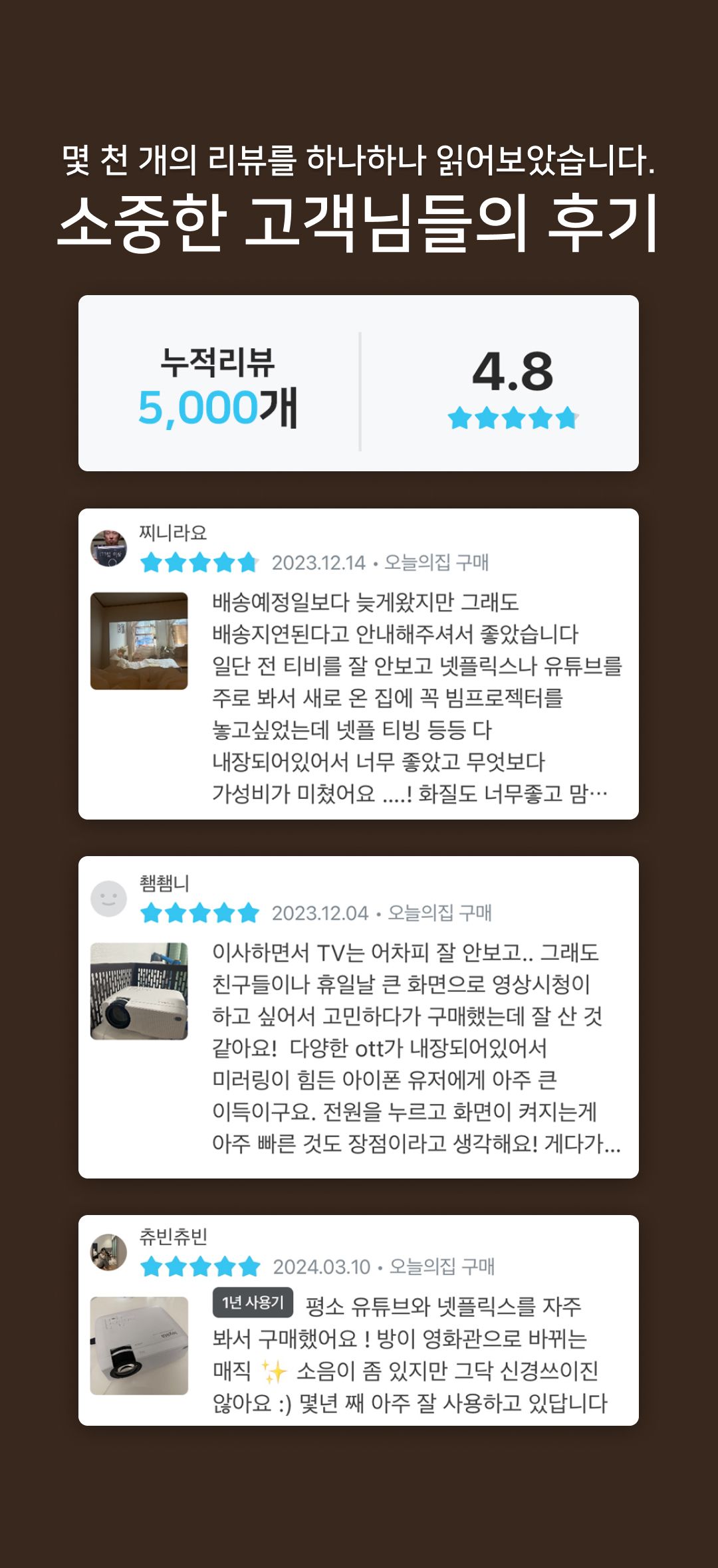 ※무선연결과 달리 동봉된 hdmi 케이블로 유선연결해서 보시면 모든 컨텐츠를(와차, 넷플릭스 등등) 즐기실 수 있습니다!