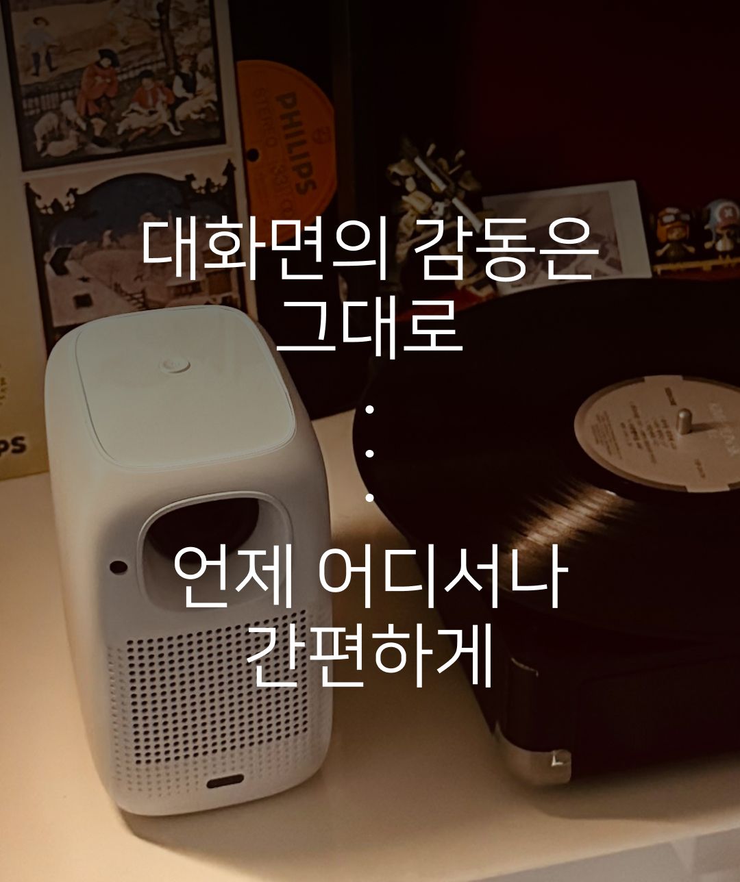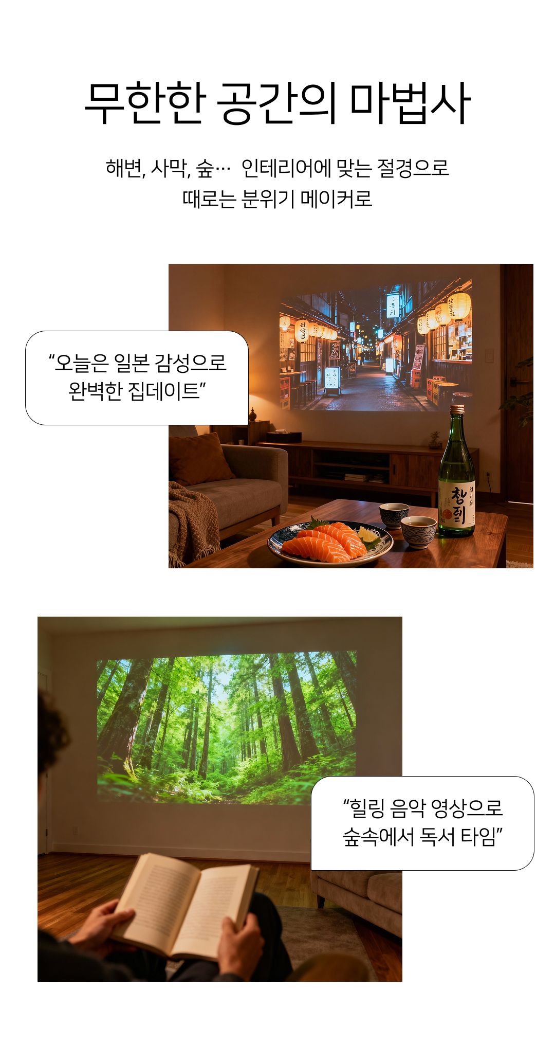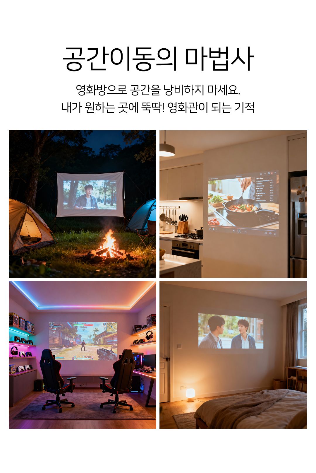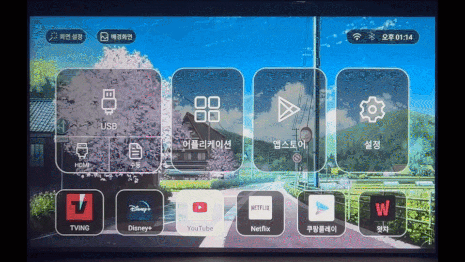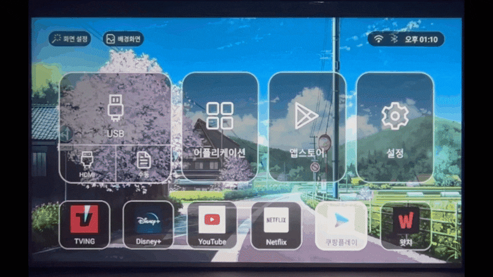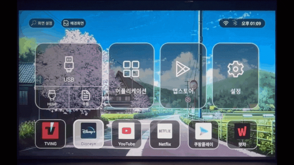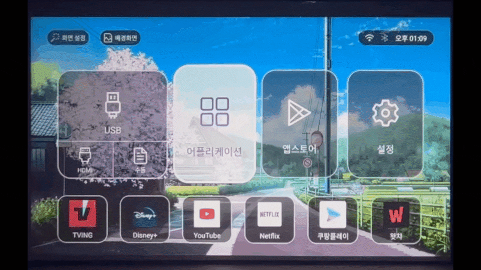 와이파이만 연결하고 자체 설치된 앱을 실행하면 나만의 영화관이 시작됩니다.