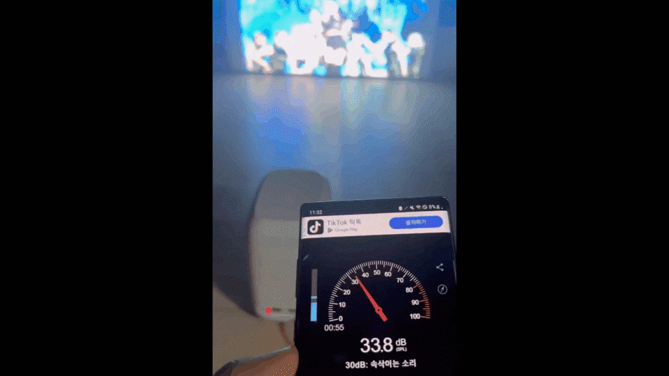 실제 영상이 구동되는 환경에서 음소거 한 상태로 팬의 소음만 측정한 결과입니다.