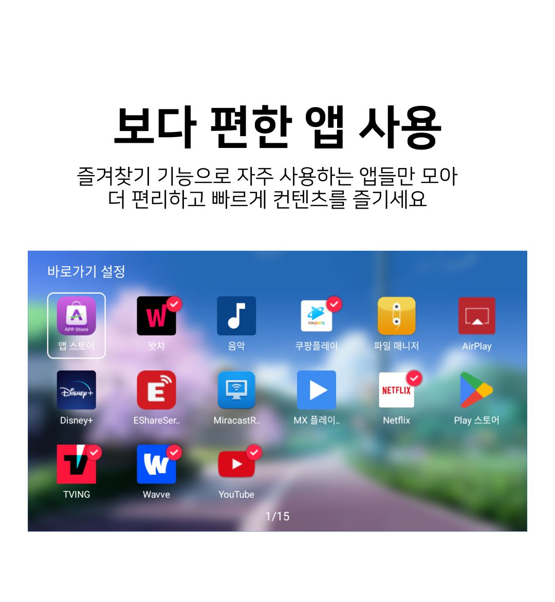 구동되는 앱은 앱서비스 업체의 정책에 따라 변경될 수 있습니다.